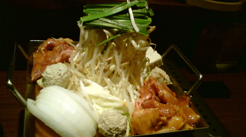鶏の鉄板鍋ぇ~ん♪ホルモン入り\(^O^)/